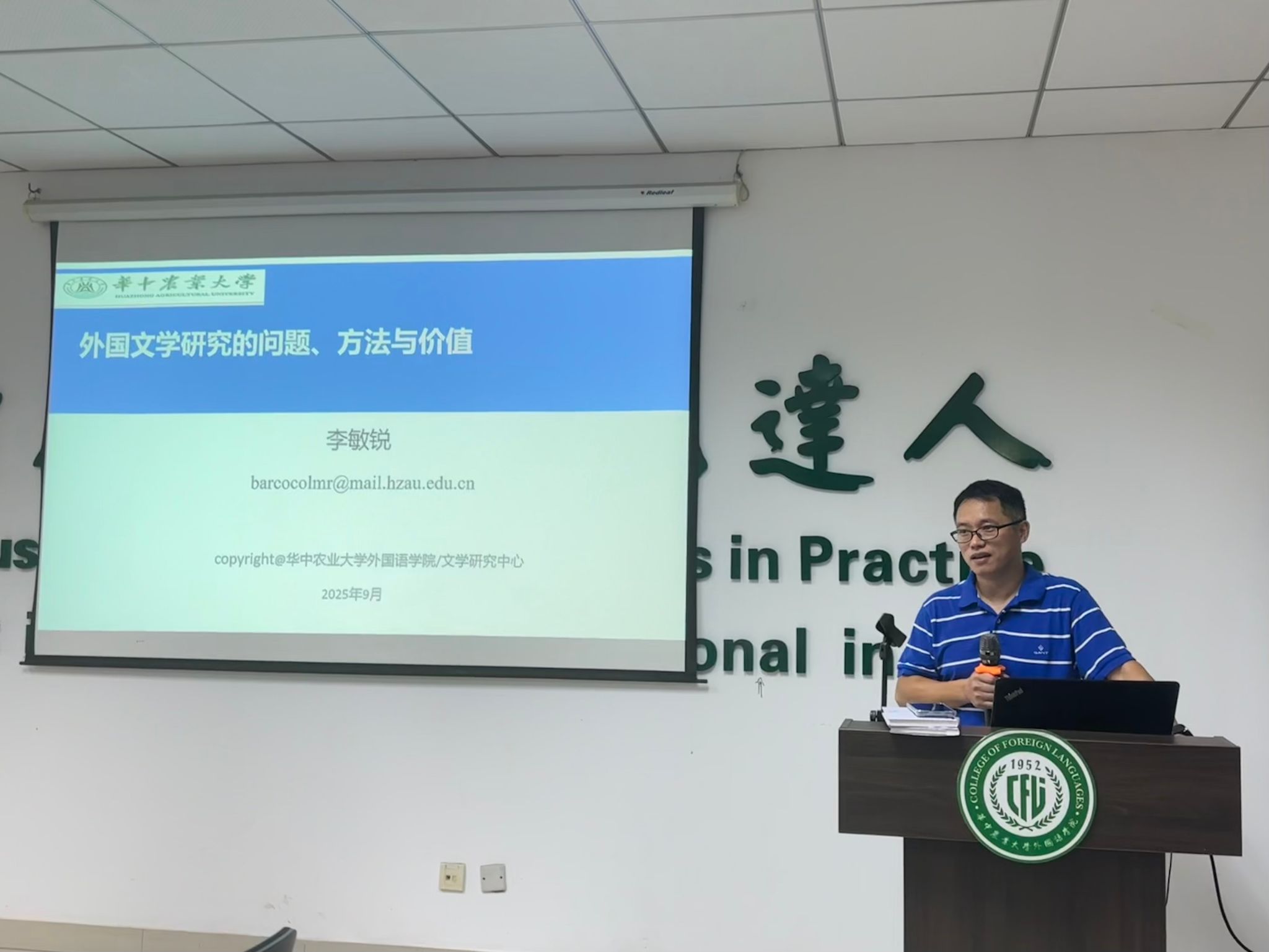 活动伊始,李敏锐老师作题为“外国文学研究的问题、方法与价值”的专题分享。他指出,自21世纪以来,外国文学研究呈现出多元化发展趋势,经典文学在多视角阐释中持续焕发新的生命力。他鼓励同学们积极运用叙事学、文学伦理学批评等理论工具,开展批评实践,不断提升学术素养。