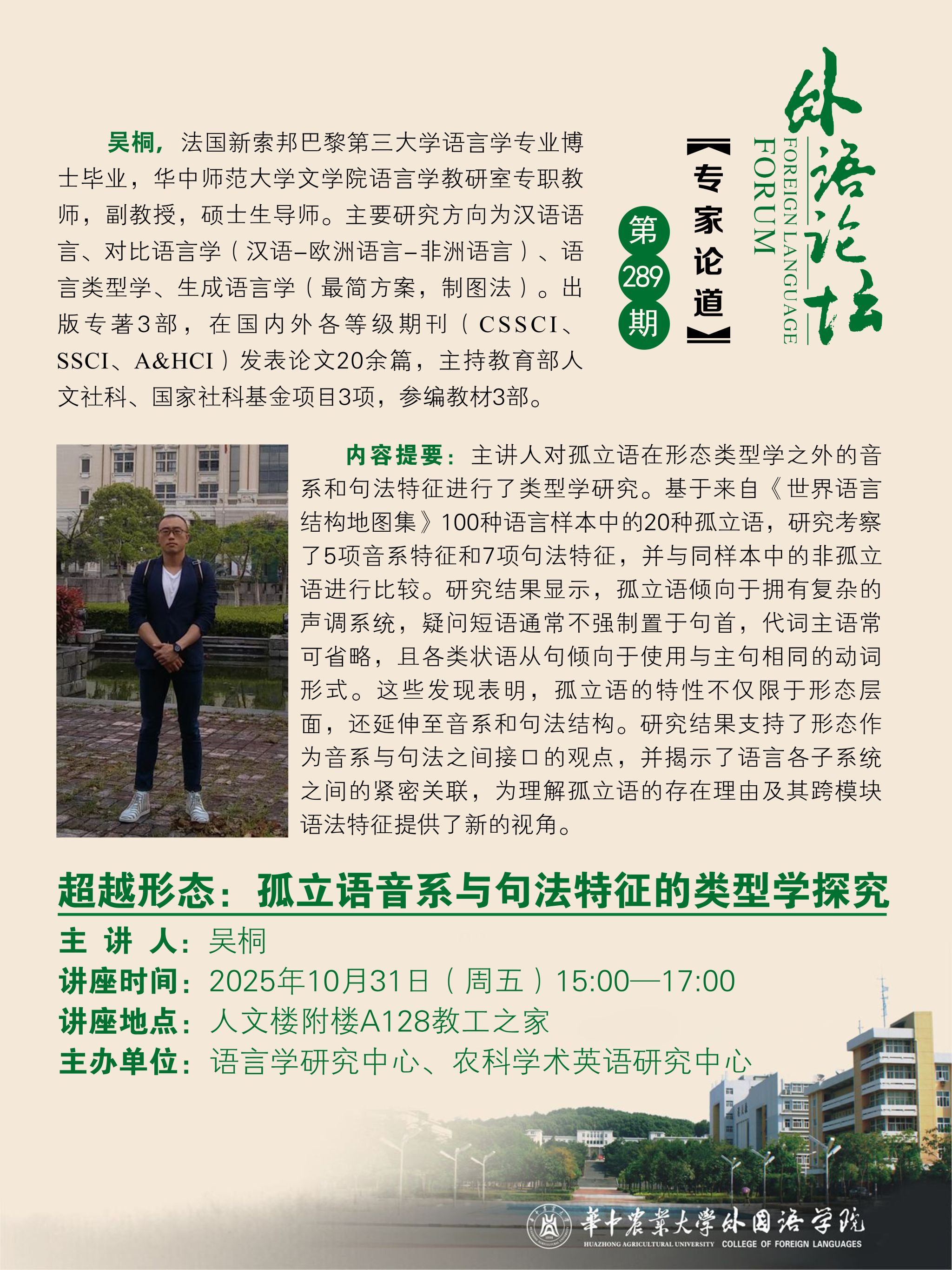 (第289期)超越形态:孤立语音系与句法特征的类型学探究