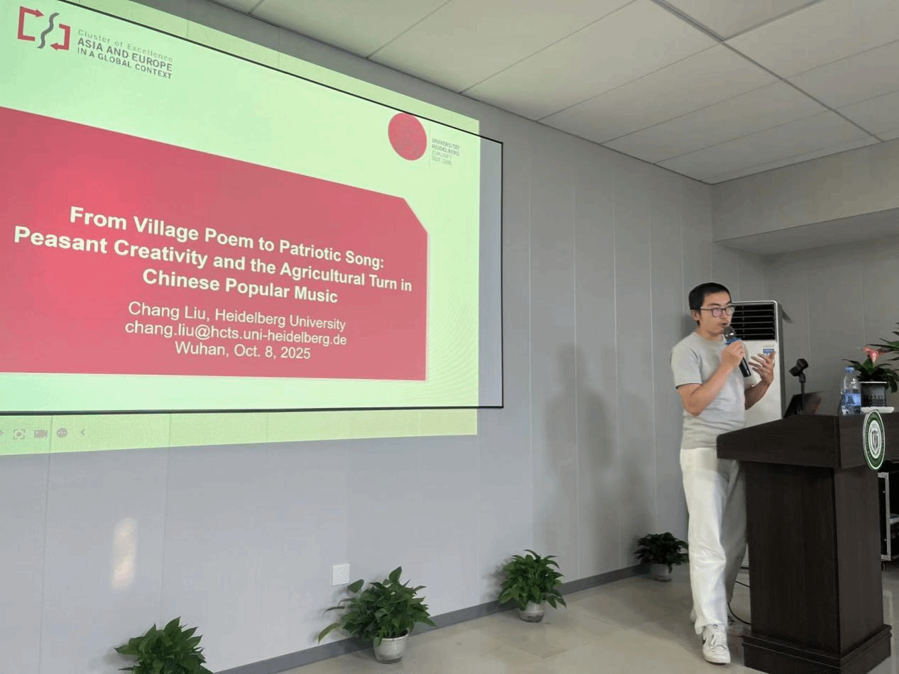 2025年10月8日,海德堡大学跨文化研究中心刘倡博士做客必赢242net官网第284期“外语论坛·专家论道”,为师生带来主题为“从乡村诗歌到爱国歌曲:中国流行音乐中的农民创作与农业转向”的学术讲座。本次讲座由必赢242net官网文学研究中心主办,我们副教授邓小红、副教授廖衡、副教授李敏锐及其他师生与刘倡进行学术互动交流,周尧老师主持讲座。