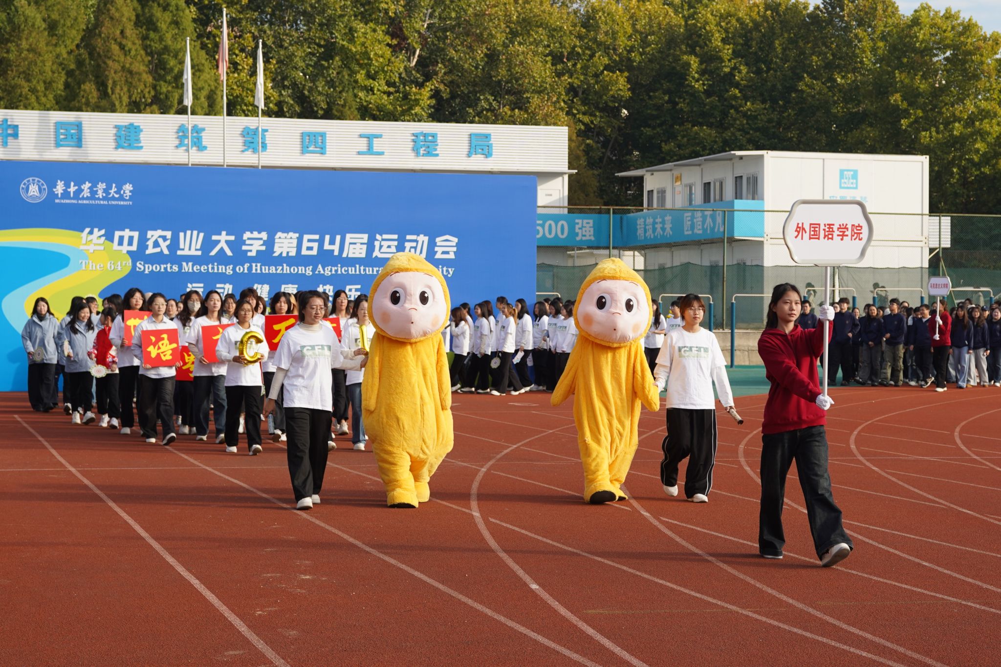 秋意正浓,晨光洒落。10月24日上午,我校第六十四届运动会开幕式于东运动场隆重举行。