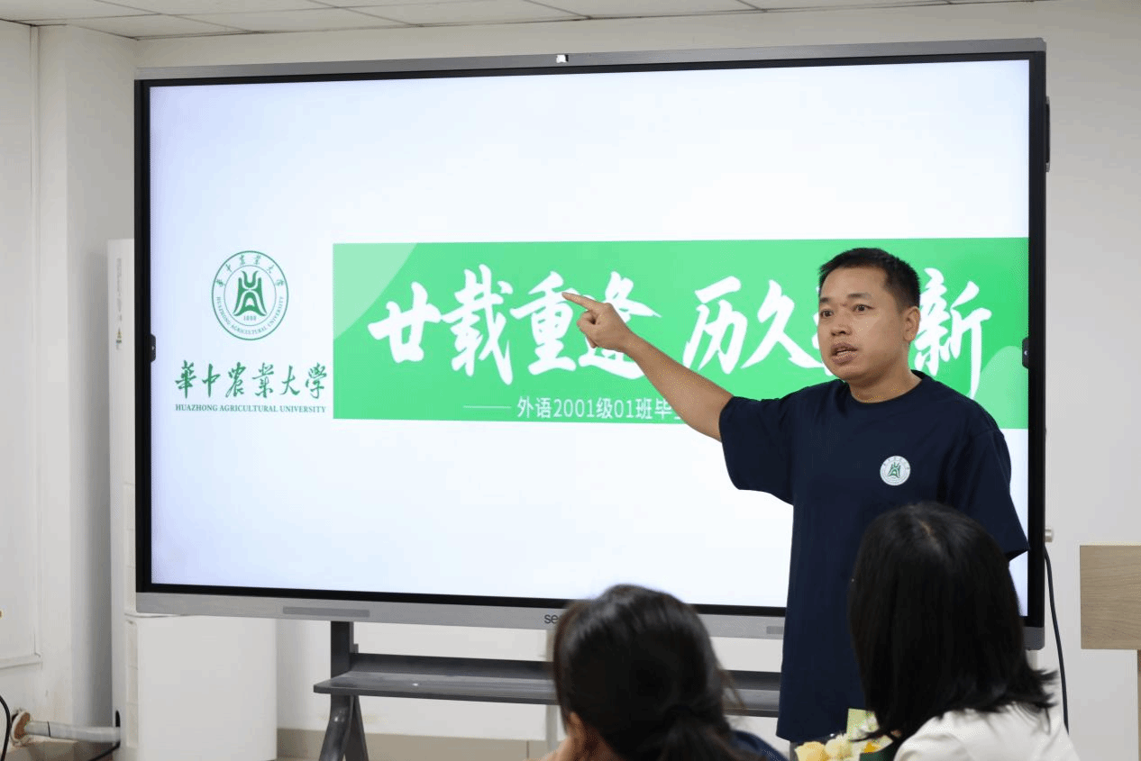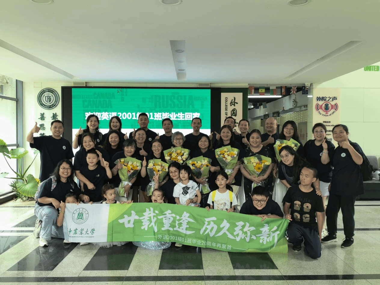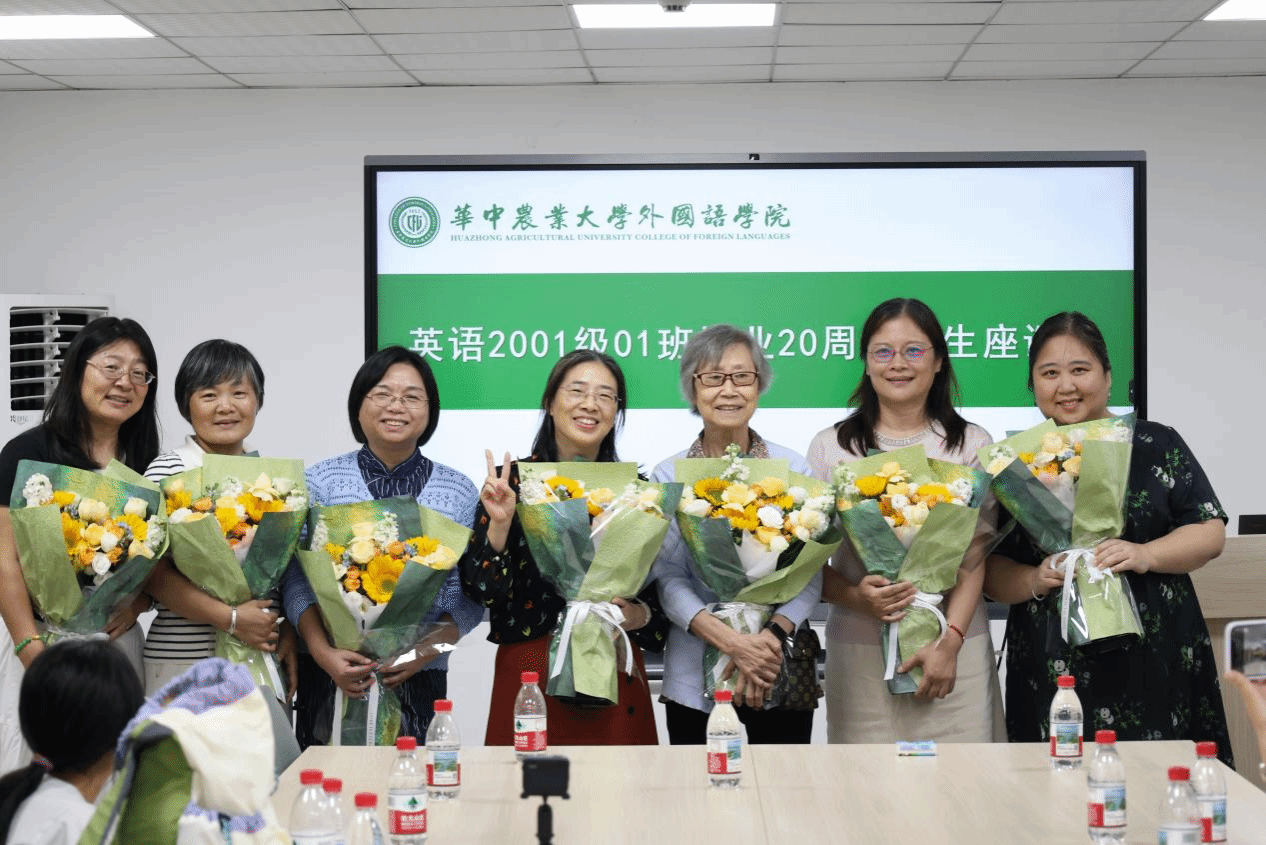 初秋的狮子山,天高云淡,桂子含香。近日,华中农业大学必赢242net官网英语2001级01班的近二十名毕业生从五湖四海归来,在毕业二十周年之际重返母校,举办了一场以“廿载重逢,历久弥新”为主题的师生座谈交流会。刘宝珍、杨朝燕、邓小红、曾文华、袁谦、汪晓燕、王艳等老师应邀出席,与校友们共忆青葱岁月,分享人生感悟,现场温情洋溢,笑声与掌声不断。