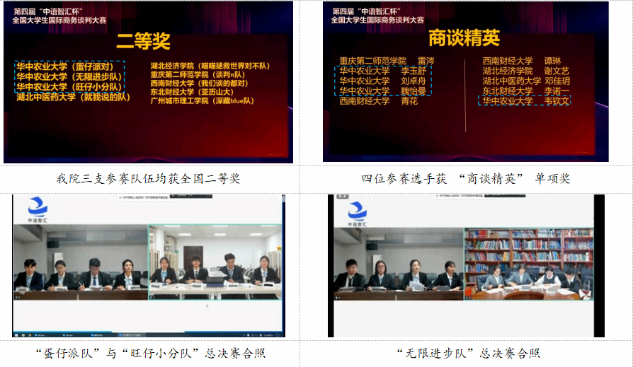 近日,由中外语言文化比较学会、中语智汇科技(厦门)有限公司和四川外国语大学等联合主办的第四届“中语智汇杯”全国大学生国际商务谈判大赛圆满落幕。本届大赛吸引了来自全国各地143支队伍参与,经过区域赛的激烈角逐,共有40支优秀队伍晋级全国总决赛,并最终选拔出一等奖1项、二等奖9项。